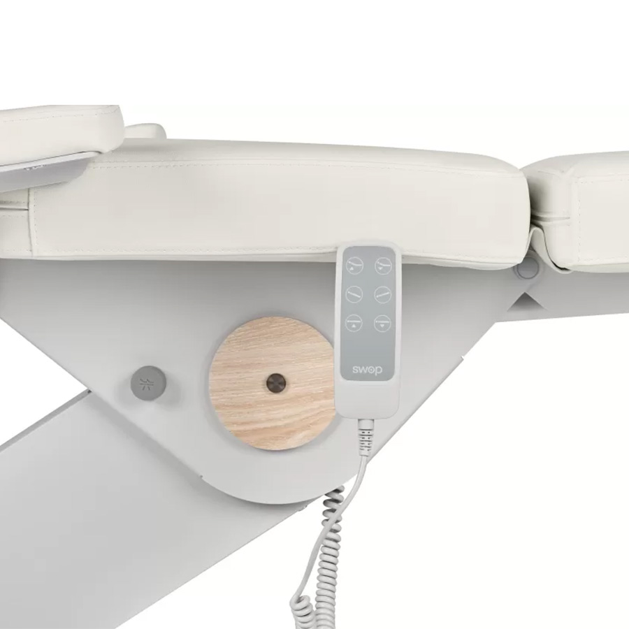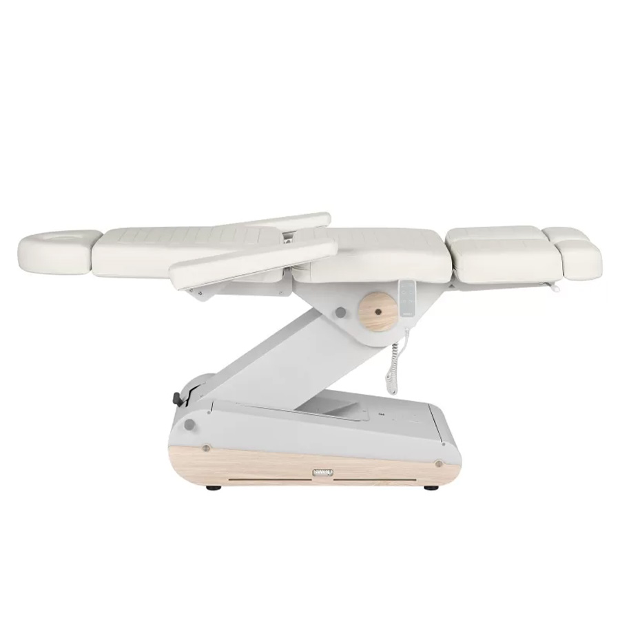 Двигатели позволяют легко регулировать спинку, высоту и положение угла наклона кресла с помощью пульта управления, ножные секции регулируются пневматикой.