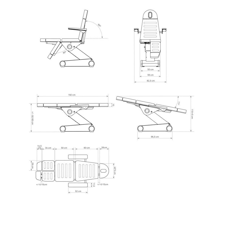 - Двигатели позволяют легко регулировать спинку, высоту и положение угла наклона кресла с помощью пульта управления, ножные секции регулируются пневматикой.