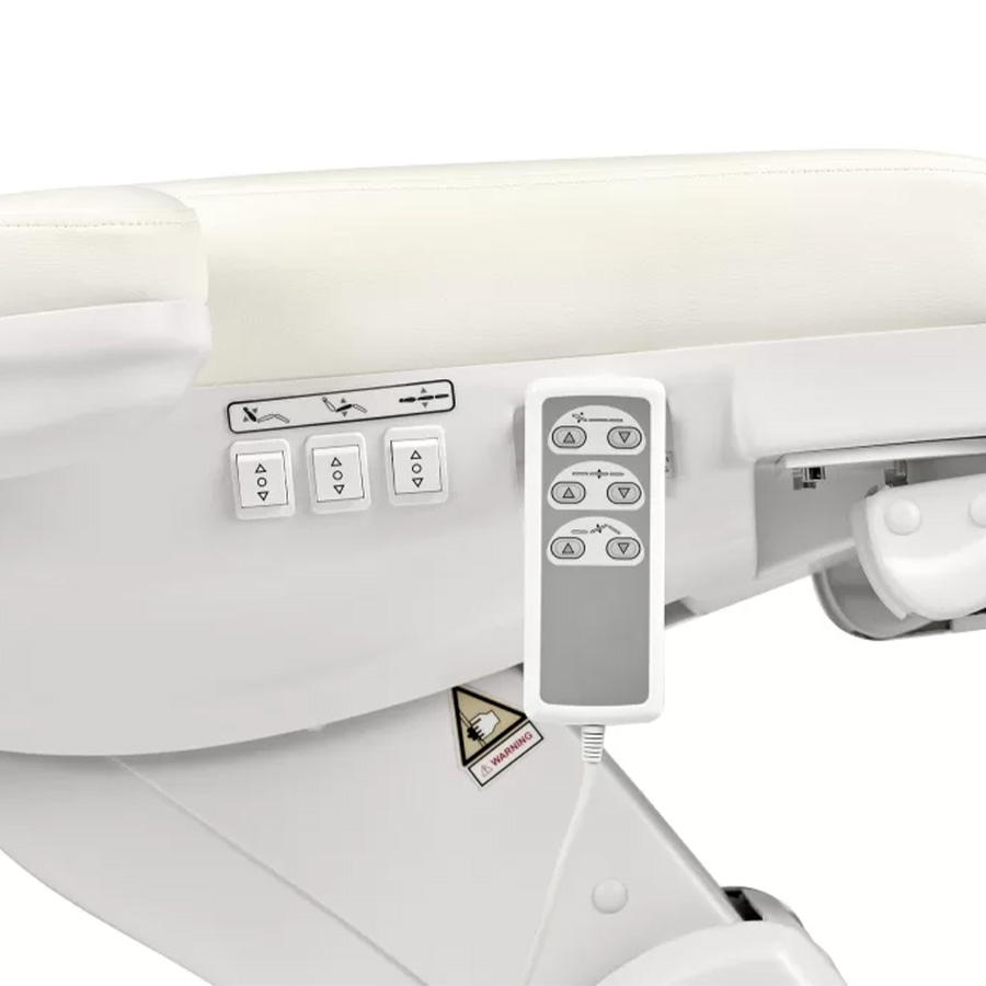 - Кушетка оснащена тремя электромотором, с их помощью регулируется высота кресла, угол наклона сидения и спинки кресла.