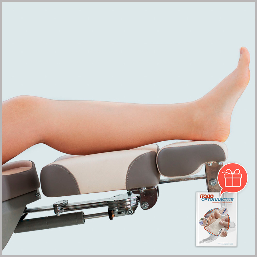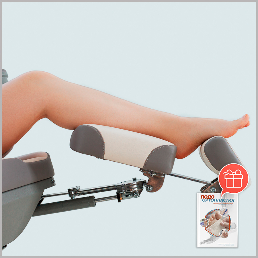 Каждая опора для ног регулируется при помощи газовых пружин по высоте, длине (два положения), они разворачиваются на угол 90 градусов для более комфортной посадки клиента, делается упор под колено и под пятку.