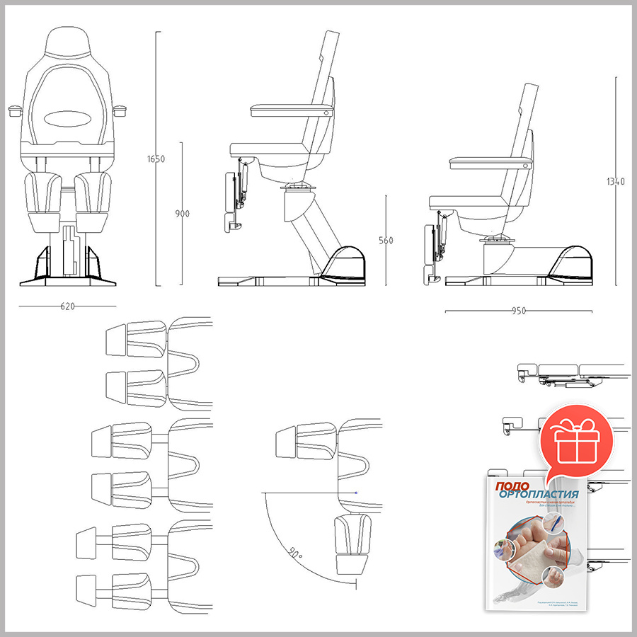 - Механизм поворота (возможность механически поворачивать кресло вместе с клиентом на угол до 270 градусов вокруг оси и фиксировать вращение)