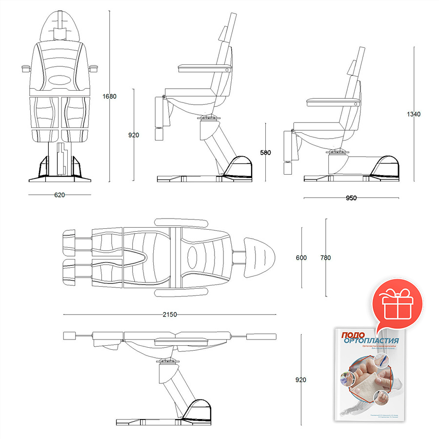 - Механизм поворота (возможность механически поворачивать кресло вместе с клиентом на угол до 270 градусов вокруг оси и фиксировать вращение)