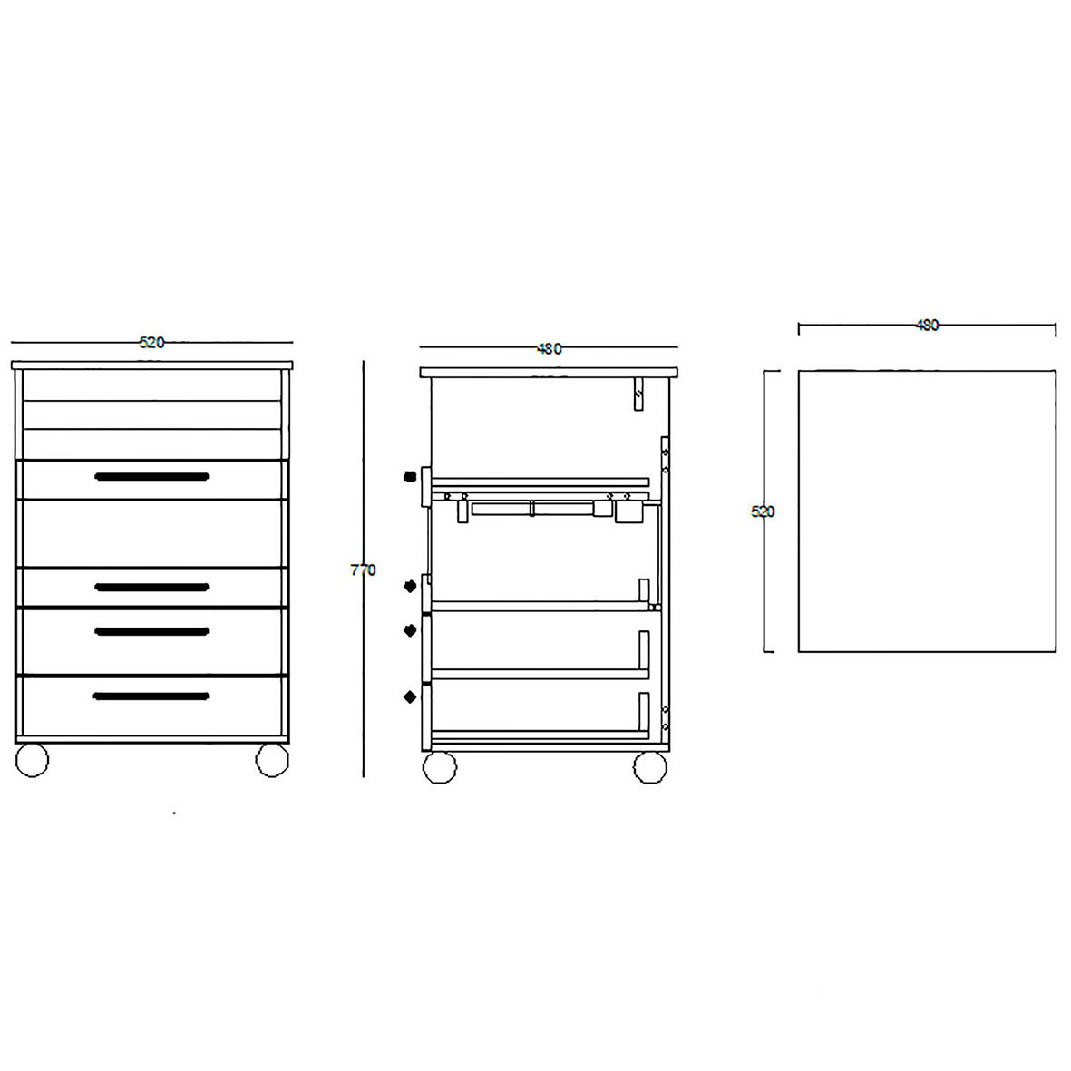 Тумба легко и плавно передвигается по полу на прорезиненных роликах.