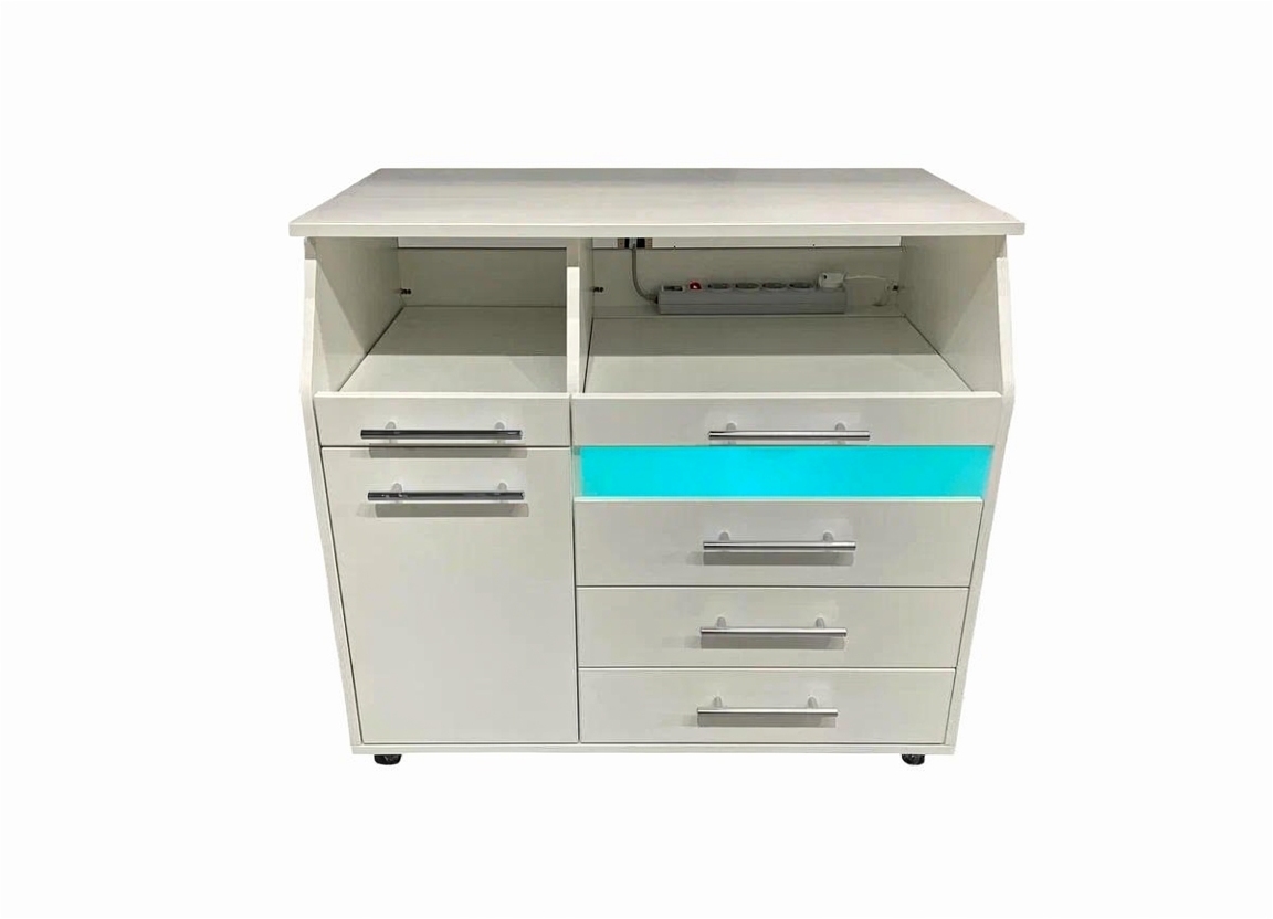 - Матированное стекло. Ящик с УФ-модулем оснащен стильным матированным стеклом, которое защищает от воздействия УФ-лучей и подчеркивает современный дизайн тумбы.