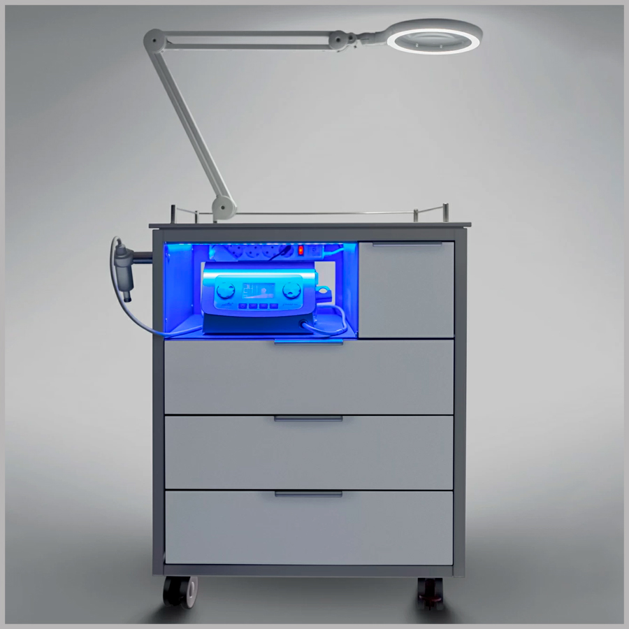При проектировании педикюрного шкафа PODOMEDICA были реализованы все пожелания, собранные от специалистов подологии и преподавателей учебных центров. Благодаря продуманному дизайну, компактности, вместительности и маневренности эффективно решит проблему экономии рабочего пространства и обеспечит удобство в эксплуатации.
