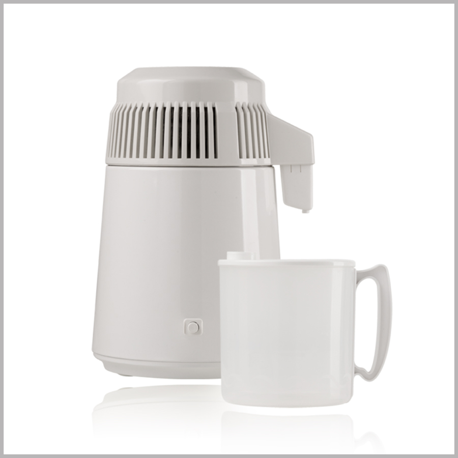 Позволяет получить дистиллированную воду за счёт кипячения с последующей конденсацией пара. Производит 700 мл воды в час. Объём 4