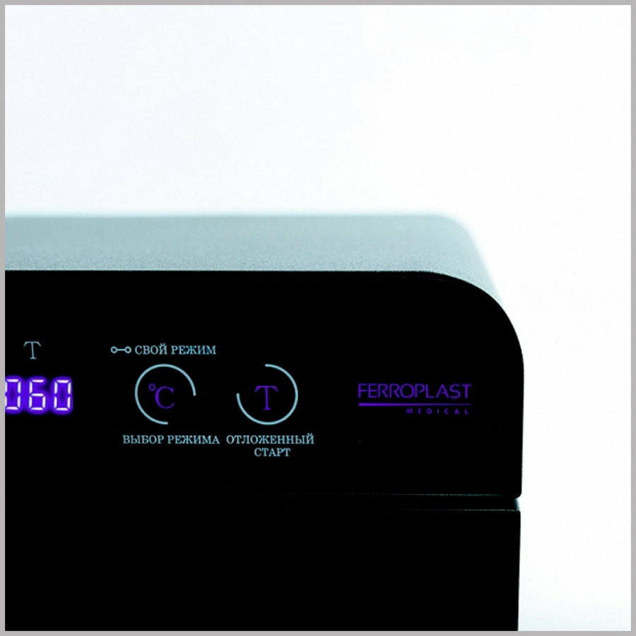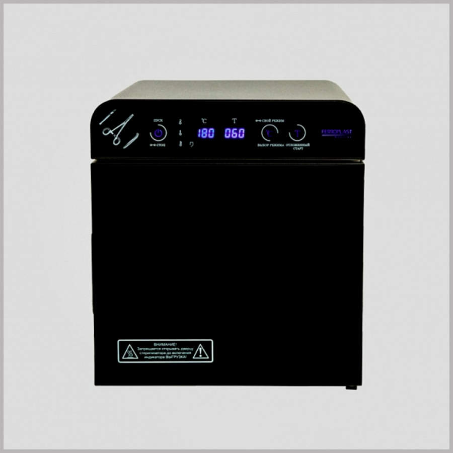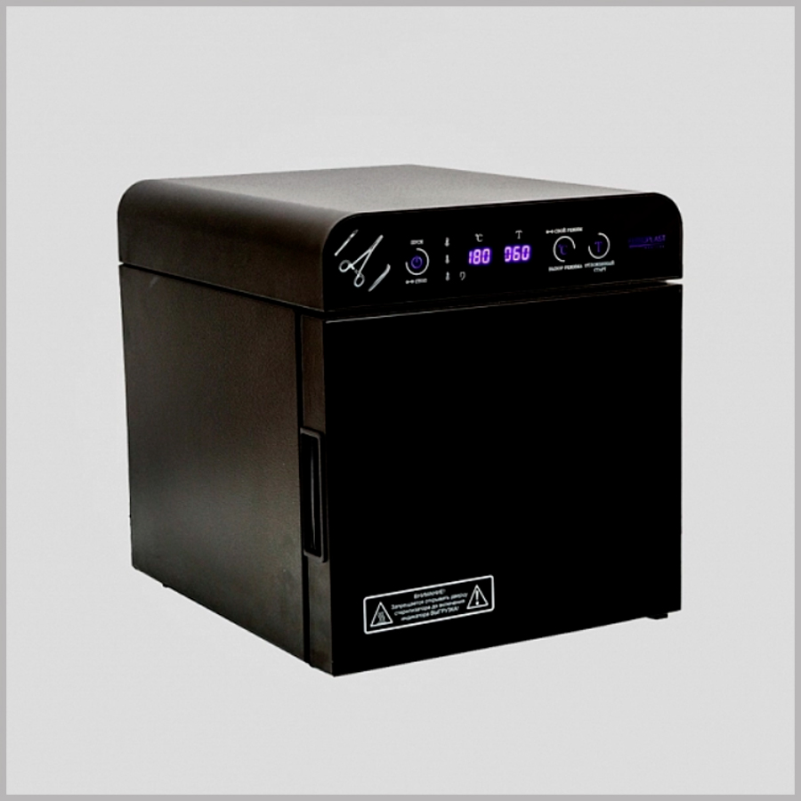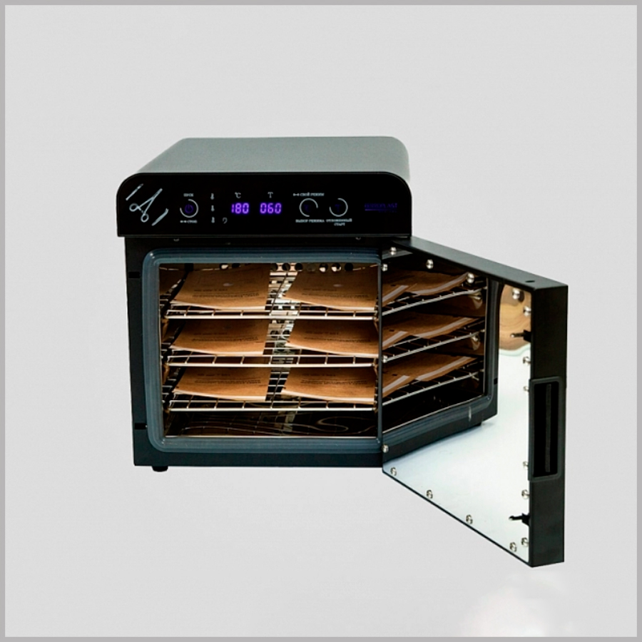 Стильный и современный стерилизатор с сенсорной панелью управления, блокировкой дверцы в режиме работы и стеклянной вставкой. Стерилизационная камера разработана методом компьютерного моделирования, с целью достижения максимального нагнетания воздуха, что позволяет располагать инструмент в стерилизационной камере на 3 полочках одновременно. Предусмотрены режимы работы для дезинфекции и сушки косметологического инструмента и термостойких принадлежностей.