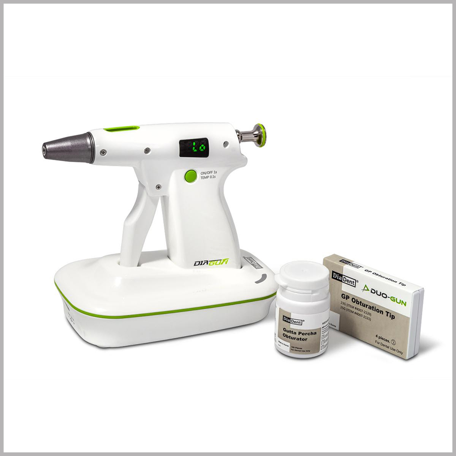 Dia-GUN - эндодонтический беспроводной прибор, который нагревает специально разработанную гуттаперчу до состояния высокой текучести и позволяет ввести ее через специальную канюлю в корневой канал, надежно обтурируя его.- Беспроводная, эргономичная и компактная конструкция для удобства эксплуатации и хранения.
