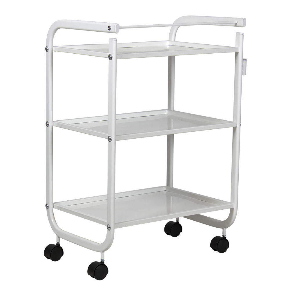 Три удобные полочки вместят все принадлежности специалиста, а дополнительные бортики защитят их от случайного падения на пол. Основание установлено на манёвренные колёса, поэтому стол можно легко перемещать по рабочей площади без особых усилий. Такое оборудование подойдёт даже для помещений с небольшой площадью, так как имеет компактные размеры: