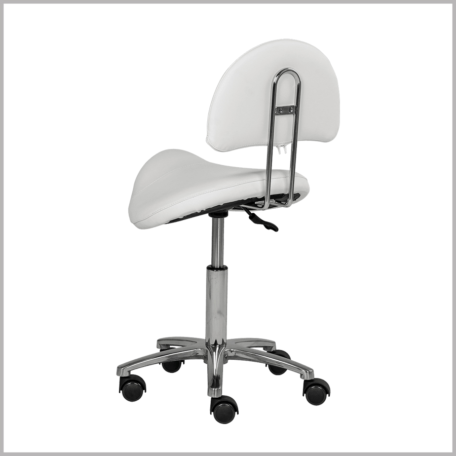 Оригинальный стул мастера седло со спинкой МД-901А для применения мастерам по маникюру и педикюру, парикмахерам, визажистам, косметологам и другим специалистам. Это профессиональное оборудование с отличными характеристиками и стильным дизайном. В комплектацию стула входит анатомическое сиденье в виде седла и удобная спинка на металлическом хромированном каркасе. Для изготовления мягких элементов применяется качественный плотный поролон и экологически чистый, влагоустойчивый обивочный материал – экокожа.